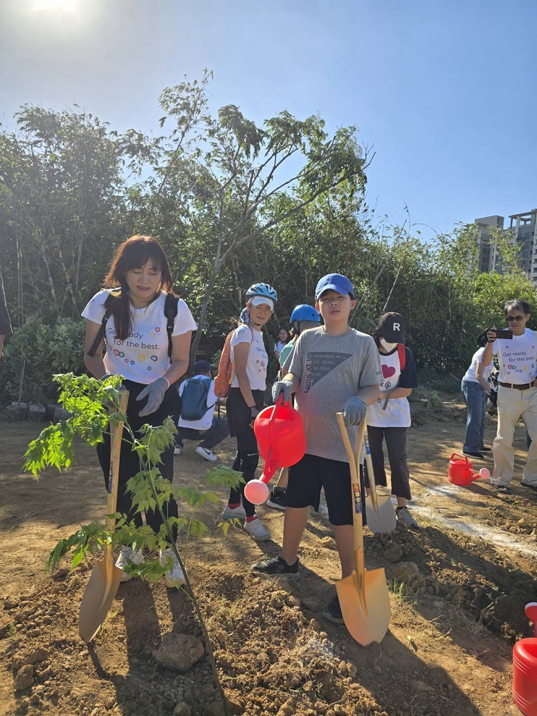 農田水利署今(114)年辦理植樹養護認養,持續營造水圳、埤塘植生綠帶,並結合農業淨零排放政策,推動農田水利永續ESG專案,今年度媒合安聯人壽申辦桃園大圳8-29號池植樹養護計畫,並於114年10月18日辦理植樹活動,以具體行動落實農業永續 ESG,主任秘書朱孝恩今日偕同安聯人壽董事暨財務長沃格穆(Oliver Wohlgemuth)及行銷長鄭祥琨等100多名同仁及眷屬,於桃園大圳8-29號池周邊隙地共同參與植樹活動,營造埤塘綠帶多元休憩空間,也為全球淨零減碳盡一份心力。
